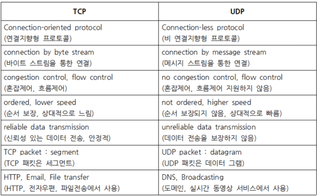 ex) TCP, UDP, RTP, RTCP 등