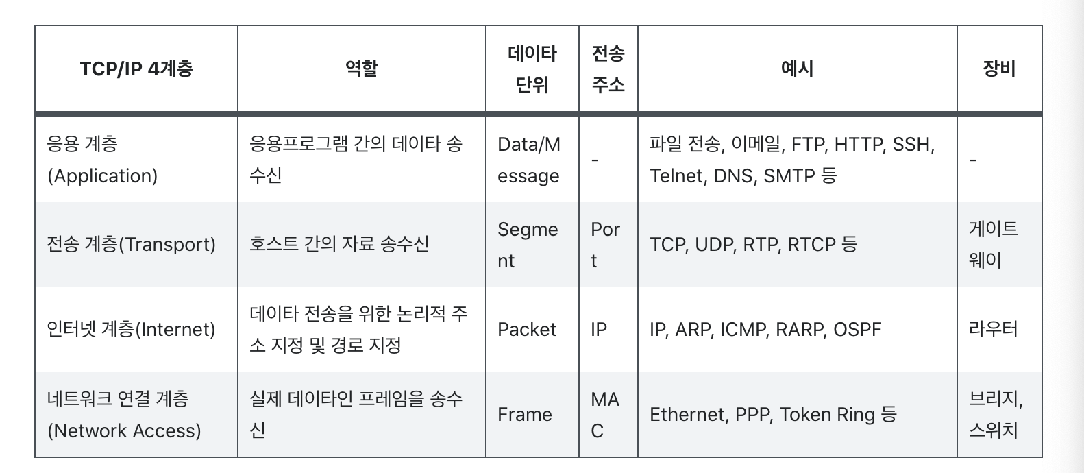 계층 모형TCP/IP 모형은 현재의 인터넷에서 컴퓨터들이 서로 정보를 주고받는데 쓰이는 통신규약(프로토콜)의 모음으로 각 계층은 담당하는 위치마다 처리 역할을 구분해 진행함으로 서로 간의